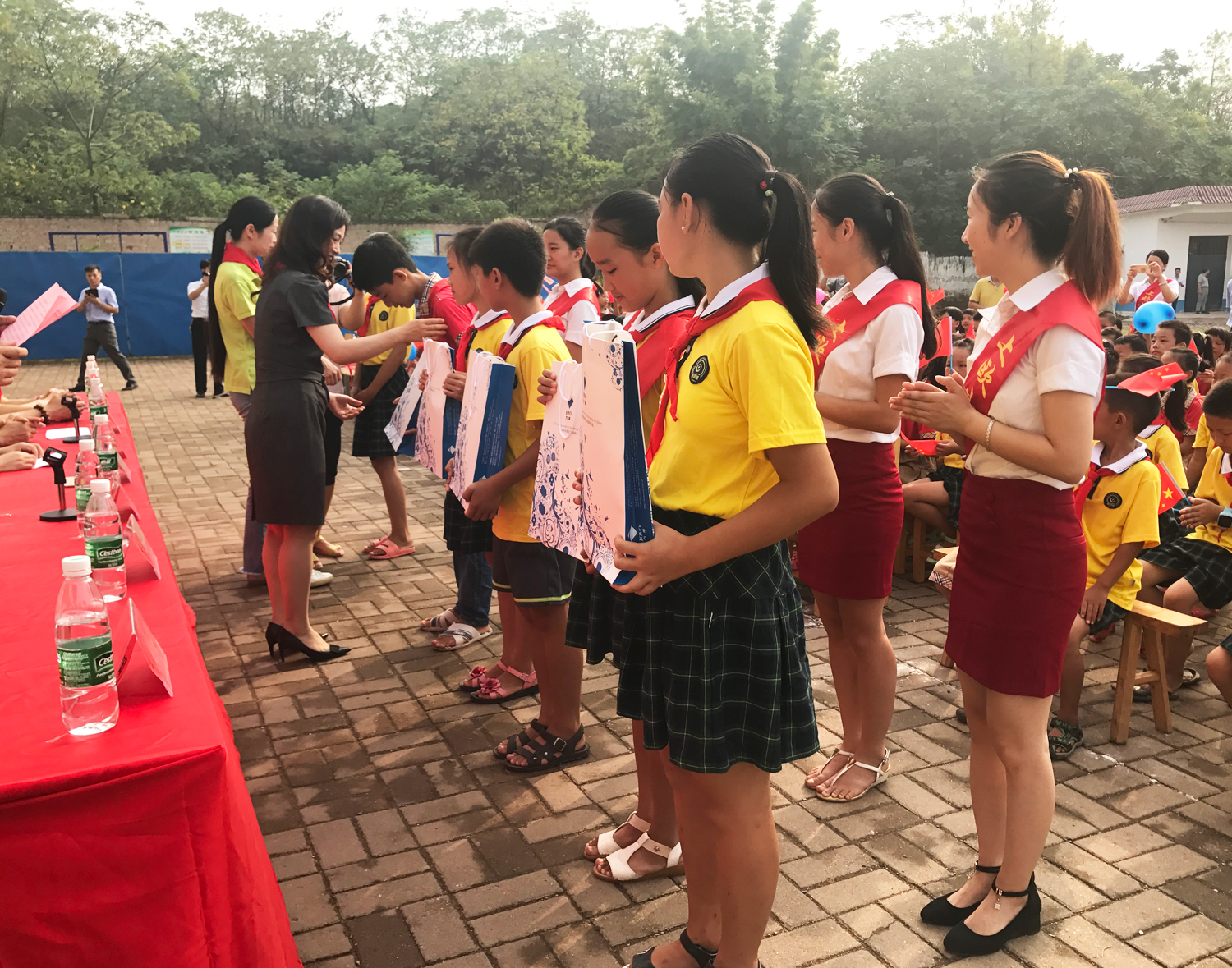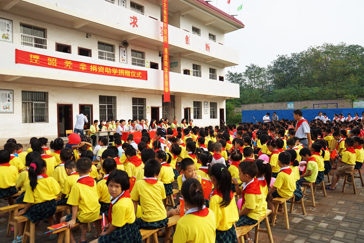江西九丰能源有限公司通过博研基金为上欧小学捐款20万元整,用于学校基础设施建设和改善,并现场为孩子们送上了学习用品。
