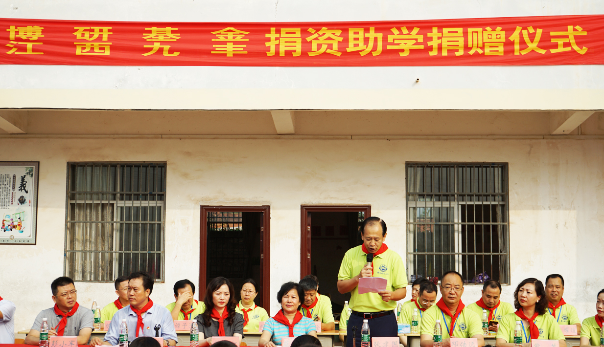 于都县主管教育的蔡兰芳副县长代表县委、县政府对九丰和博研教育企业家们的善举表示感谢。蔡兰芳副县长说:“ 于都建县历史悠久,是中央红军长征的出发地,是革命老区,近年来,于都的经济和社会各项事业有了很大的发展,但是于都县仍然是国家级贫困县,各级各类的学校办学条件里人民群众的期盼和教育人的愿景还有较大差距,感谢爱心企业家对于都教育的关注和善举!”